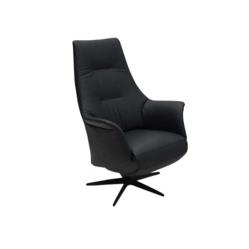 Ontwerp: Arjan van Dijk. De Framati Elias is een elegante relaxfauteuil, uitgevoerd in zwart leder Dino en een zwart onderstel. De Elias is elektrisch verstelbaar en door de ingebouwde accu heeft u geen last van losliggende draden in uw woonkamer.